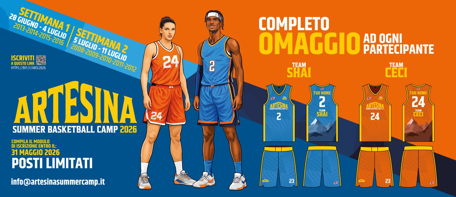 Allenamenti, gare, tornei, kit del camp (canotta e pantaloncino). Arriva al mattino e torna a casa prima di cena (pranzo e attività serali incluse). Costo 275 €